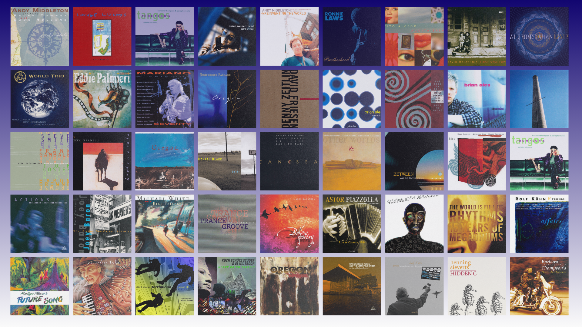 Over the past decades, INTUITION has collaborated with some of the most significant artists in the field of jazz and world music—whether as a principal artist or accompanying musician, such as Steps Ahead, Oregon, Eddie Palmieri, Nighthawks, Dave Holland, Farafina, Jon Hassell, Bill Frisell, Joey Baron, Michael Brecker, Abdullah Ibrahim, Joe Zawinul, Pat Metheny, Don Cherry, Stephan Micus, Ziv Ravitz, Lionel Loueke, Accordion Tribe, Lounge Lizards, Dino Saluzzi, Zakir Hussain, Airto Moreira, Vital Information, Marc Johnson, Dominic Miller, Manu Katché, Pino Palladino, Rolf Kühn, Joachim Kühn, Charlie Mariano, Jasper van’t Hof, Bo Stief, Ernie Watts, Peter Erskine, Steve Swallow, Ralph Towner, Miroslav Vitous, Sextetto Mayor, Paul Wertico, Kevin Eubanks, Tom Coster, Barbara Thompson, Glen Velez, Henri Texier, Michael Blake, David Friedman, Lee Konitz, Lokua Kanza, Vincent Courtois, Victor Bailey, Mike Stern, to name but a few.